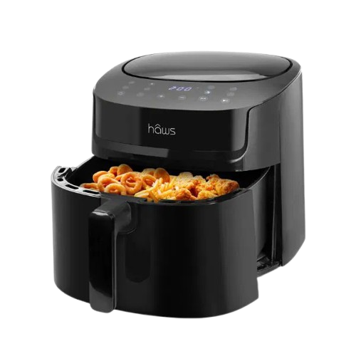Qookware Air Fryer med 7,5 liters kapacitet er en stor og praktisk airfryer, der gør det nemt at tilberede store portioner til hele familien. Med sin luftcirkulationsteknologi sikrer den jævn varmefordeling, og du kan reducere dit olieforbrug markant sammenlignet med en almindelig ovn eller friturekogning.