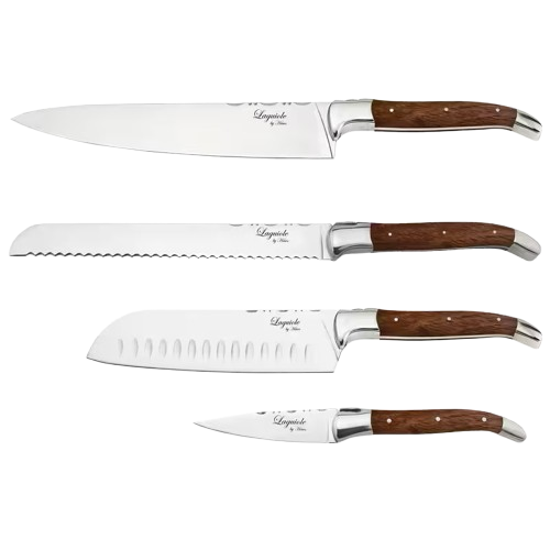 Giv madlavningen et løft med dette elegante 4-delte knivsæt fra Laguiole by Haws. Knivene kombinerer funktionalitet med tidløs fransk æstetik og har smukke håndtag i rosentræ, der ligger behageligt i hånden og sikrer godt greb under brug. Perfekt til både daglig madlavning og som gave.