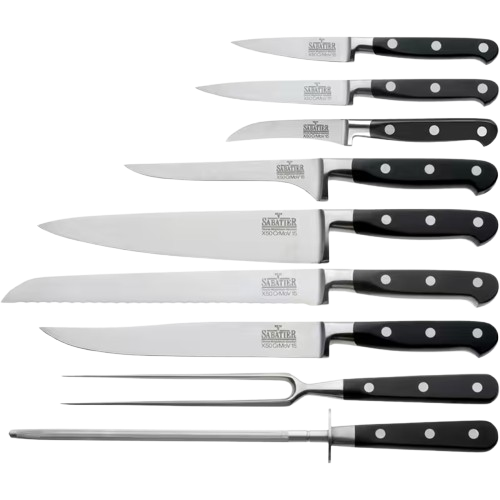 Sabatier Origin knivsættet kombinerer funktionalitet, holdbarhed og klassisk design. Med 9 dele får du alle de essentielle knive til både daglig madlavning og avancerede køkkenprojekter, leveret i en elegant knivblok, der sikrer sikker og pladsbesparende opbevaring.