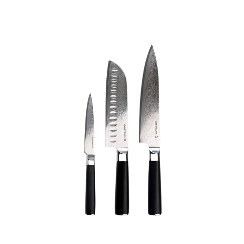 Har du ikke brug for et kæmpe sæt, er Gastrotools The Essential Collection et smart valg. Sættet består af tre nøje udvalgte knive: en gyuto-kokkekniv, en santoku-kokkekniv og en utility-kniv. Alle knive har en kerne af VG10-stål omgivet af 66 lag rustfrit stål, hvilket giver en hårdhed på 60 HRC. Skæfterne er i sort G10-komposit, som er ergonomisk, slidstærkt og vandafvisende. Knivene leveres i eksklusive gaveæsker med magnetlukning.