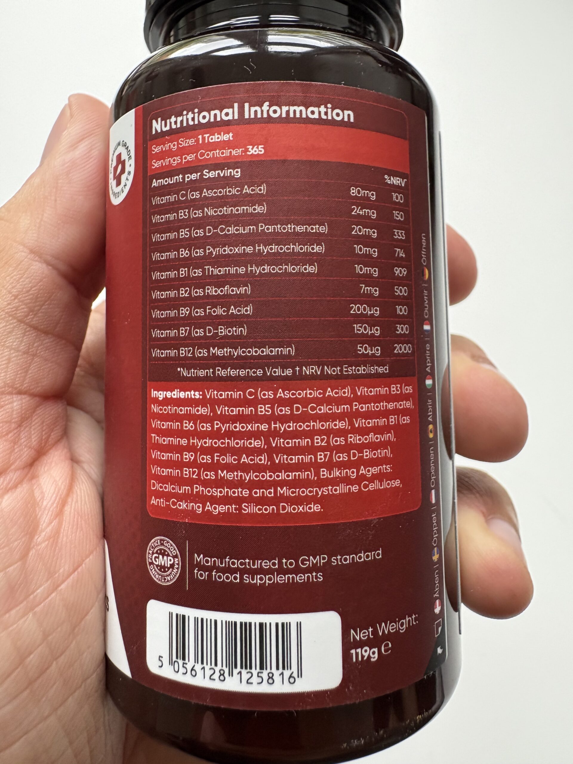 Tilskuddet er en komplet pakke med alle 8 B-vitaminer samt tilsat C-vitamin. Det betyder, at du med kun én tablet om dagen får dækket: